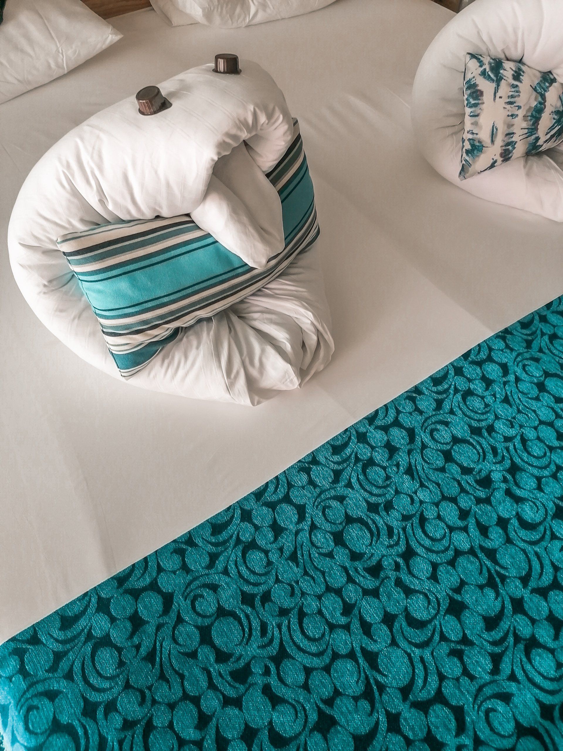 Im Allgemeinen sind die Kabinen für mich ziemlich ähnlich, was den Aufbau angeht. Hinter der Tür befindet sich bei beiden ein kleines Bad mit Dusche, WC und einigen Ablagemöglichkeiten. Danach folgt das große Doppelbett, TV, Sitzmöglichkeiten und natürlich das Beste an dieser Kategorie: der Balkon! Der auffälligste Unterschied: die Farben! Während AIDA die Kabinen traditionell sehr bunt und lebhaft gestaltet, legt MS auch hier auf Eleganz. Mit eher gedeckteren Tönen und einigen Holzelementen, wirkt die Kabine insgesamt etwas ruhiger. Pluspunkt bei MeinSchiff: Die Kaffeemaschine! Wer gerne morgens auf der Kabine seinen ersten Kaffee des Tages genießt, hat hier definitiv Vorteile. Dahingegen bietet AIDA auf jedem Balkon eine Hängematte, die ich niemals missen möchte. Insgesamt geben ich aber in der Kategorie Kabine beiden Reedereien einen Punkt. Da lässt sich einfach keiner besonders hervor heben.