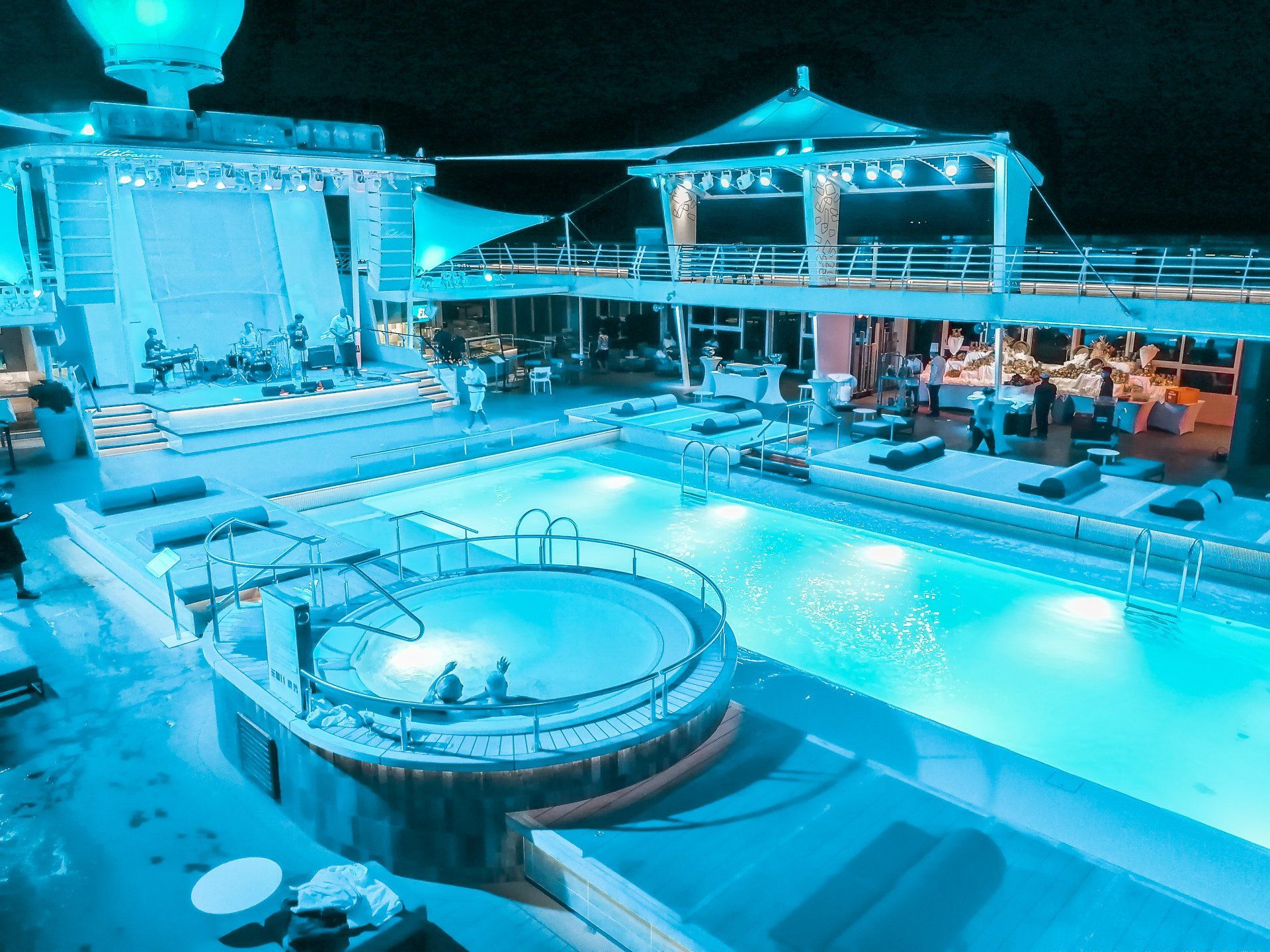Hier hat MS für mich definitiv mit Abstand die Nase vorn. Warum? AIDA hat (zumindest auf den Sphinx-Schiffen, mit denen ich immer unterwegs bin) zwei kleinere, getrennte Pools und zwei Whirlpools. Die Hauptpools als Pools zu bezeichnen, ist aber eher schwierig, da es eigentlich mehr kleine Becken zum abkühlen sind. Bahnen schwimmen wird da eher schwierig. MeinSchiff im Gegensatz hat das Pooldeck in zwei Bereiche unterteilt: Ein wirklich sehr großzügiger Pool mit je einem Whirlpool auf beiden Seiten. Hier kann man definitiv den ein oder anderen Meter schwimmend zurücklegen. Ein Stück weiter befindet sich ein weiterer, etwas kleinerer Pool. Auch dieser bietet zwei weitere Whirlpools und ist zwar etwas kleiner, aber immer noch deutlich größer als die AIDA-Version.
